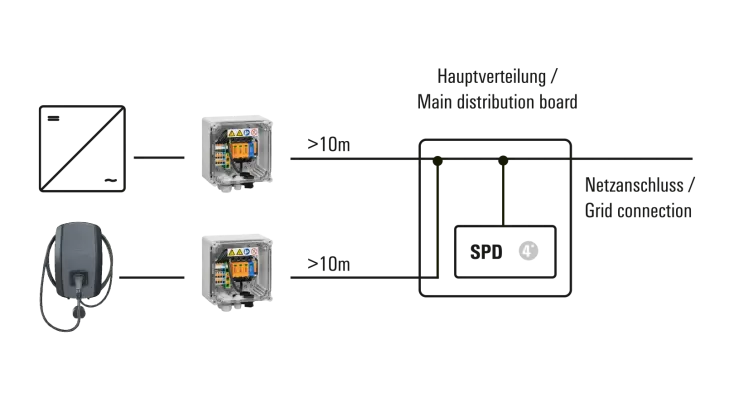Protege tu inversor de cadena o tu cargador de vehículos eléctricos de las sobretensiones en el lado AC de tu instalación. Especialmente para longitudes de cable superiores a 10 metros, los estándares exigen una solución compacta y flexible.
